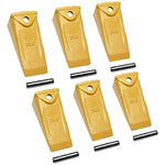X156 Dirt Teeth Hensley Style Bucket Teeth/Tooth with P156 Roll Pins - 6 Pack