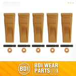 6Y3222 Caterpillar Bucket Teeth with Pins and Retainer Clips, CAT Style 6Y-3222 Long Tip J225 Replacement Dirt Tooth for Excavator - 5PK