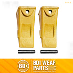 BDI Wear Parts Company Yellow X156L Long Bucket Teeth + P156 Roll Pins for Hensley Style for Skid Steer and Mini Excavators - 2 Pack