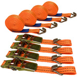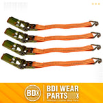 BDI Wear Parts 1" x16' Ratchet Straps Tie Down 3000LBS Break Strength, 800 LBS Working Load, Double J Hook Heavy Duty Cargo Strap for Moving Appliances, Lawn Equipment, Hauling, Trailer - 4 Pack