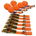 BDI Wear Parts 1" x9.5' Ratchet Straps Tie Down 2000LBS Break Strength, 600 LBS Working Load, Double J Hook Heavy Duty Cargo Strap for Moving Appliances, Hauling, Trailer, Securing Cargo - 6 Pack