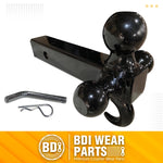 BDI Wear Parts 2" Trailer Receiver Hitch Tri Ball Mount with Hook and Pin, Sized 1-7/8"(MAX GTW 2000 lbs), 2" (MAX GTW 6000 lbs), 2-5/16" (MAX GTW 7500 lbs) Black Plated Balls, Hitch Ball, Tow Hitch