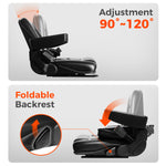 - Adjustable design: The universal seat features multi-adjustable parts. tractor seats are humanized and streamlined to support your back, which can be adjusted in the range of 90° to 120 °to relieve back pressure.The armrests are adjustable 0-90°. The adjustable design can meet the requirements of different users.